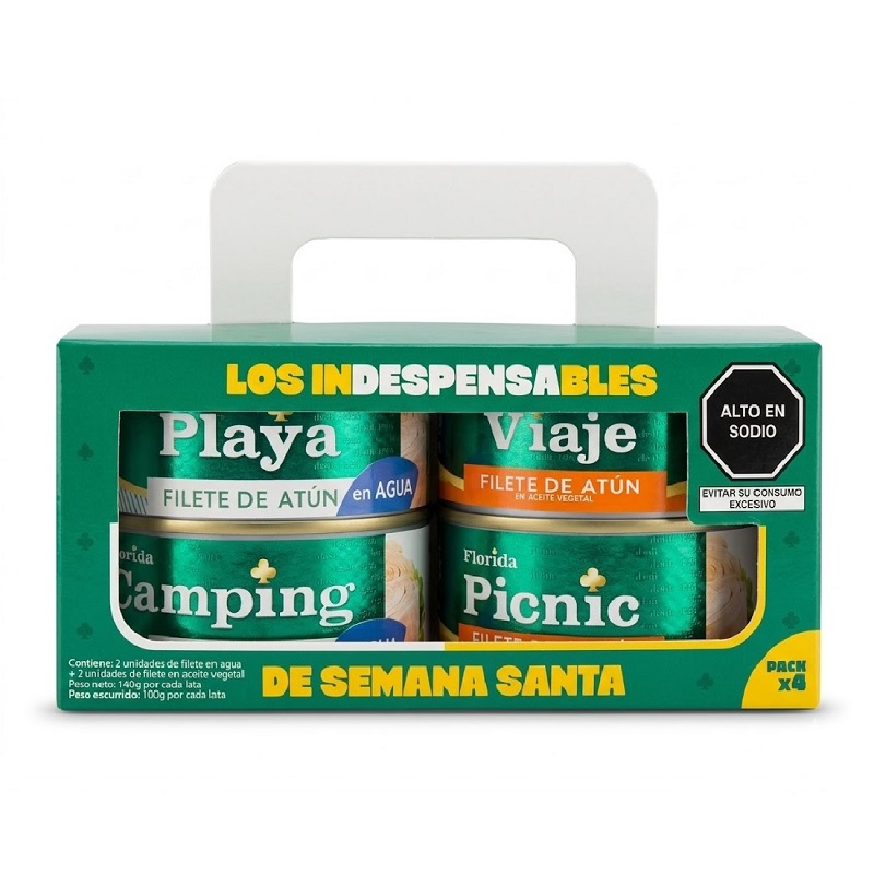 PACK ATÚN FLORIDA X 140GR FILETE EN AGUA 2 UND + FILETE EN ACEITE 2 UND